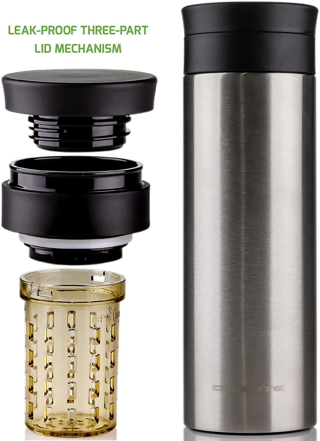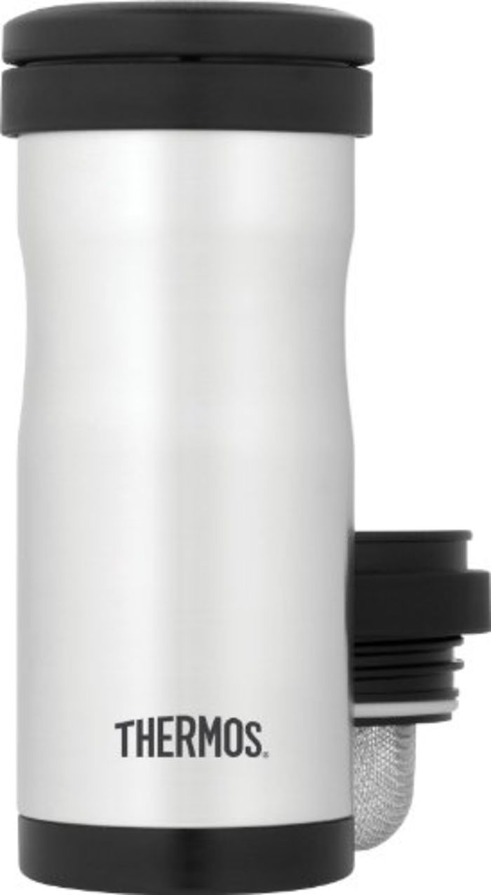 The Very Best Tea Infuser Travel Mug: The Tea Spot Everest Tea Tumbler. The Everest's double-walled, vacuum-sealed stainless steel insulation kept 22 ounces of tea hot and fresh tasting, and its screw down BPA-free top was terrifically leak-proof.